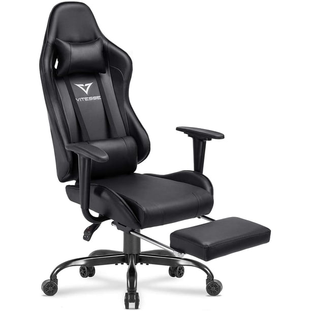 Buy Vitesse Gaming Chair With Footrest Big And Tall Gaming Chair 400lbs Office Chair Ergonomic Computer Chair High Back Chair Racing Style Chair Headrest And Lumbar Support Pu Leather Desk Chair Black Online
